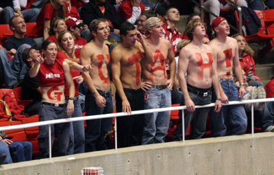 An obligate shot of part of the student section. The turnout here at the Utes gymnastics meets are likely the envy of just about any other college gymnastics team with a rabid fanbase that not only attends local meets, but like other college football teams travels to root the lady Utes on at away meets.