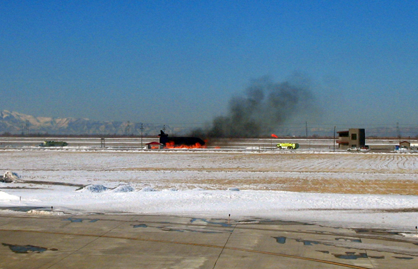 Oh, and on the plane rolling along the tarmac, we saw this image which is not necessarily what one would want to see when riding in a plane. It turns out that this object is not a plane, but an airport fire practice model.