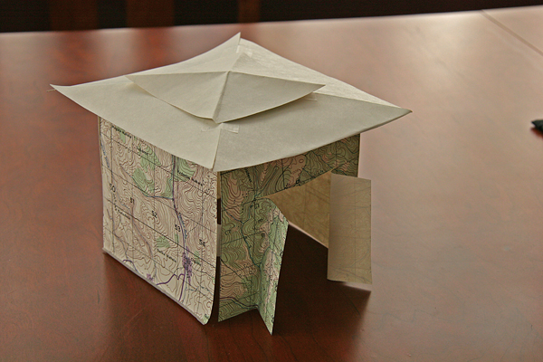 Watching the Food Network, H turned and asked me if I had ever seen a gingerbread house made to look like a Japanese tea house…. I said “…….no….?”, to which she responded, “I think we should make one”, and it was on. Time was short, but the rules were that it had to adhere to the generally accepted guidelines of gingerbread house creation in that all ingredients have to be edible and hand made with no kits allowed, encouraging creativity of materials. Gingerbread would serve as the architectural basis along with Royal icing for the adhesive out of tradition, but everything else was game. A basic model was mocked up with left over map paper and once the basic structure was agreed upon, it was used as a form for the gingerbread.
