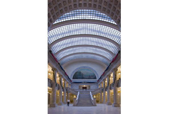 The Utah State Capitol has just finished undergoing an extensive four year restoration and was rededicated yesterday on January 4th. I was unable to attend the opening ceremonies, but did see the fireworks from the window of a late meeting I was in up at the Moran Eye Center. Today however, was the grand opening of the Capitol to the public and H and I decided to go up and see the building and drop in to see an old friend working at the Capitol as well.