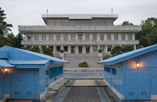 Panmunjeom and the joint security area is the location of perhaps the highest tension. Soldiers are not permitted to carry long guns in the zone, there is no acknowledgement, waving, gesturing or communicating of any sort allowed by either side according to the peace accord agreements. There are however, staring contests that occur on both sides with North Korean, South Korean and US troops standing motionless, staring at their opponent across the military demarcation line.