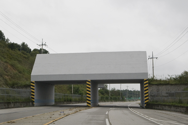 However, all around is the constant reminder that this is one of the most heavily defended borders in the world. Discrete signs alerting people transiting this zone identify locations of mine fields, fences topped with razor wire, lookout posts, machine gun emplacements, tank traps, artillery revetments and infantry trenches are everywhere.
