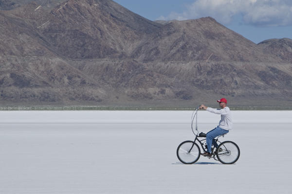 Most folks are surprised at the distances that need to be covered on the salt flats. Getting from the pits to the start line for instance is a five mile affair and in the heat of August, it can be downright dangerous. So most folks that spend any time on the salt for Speed Week bring with them various unique and sometime absurd methods of moving about. Oh and do bring lots of sunscreen and water. *Drink* the water… all of it. Some, like the young girl above like to enjoy the sun, but the heat can kill you out here, so do prepare yourself if you’d like to schedule a visit.